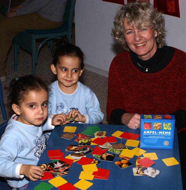 Durch falsche Ernährung und mangelnde Bewegung werden viele Kinder zu dick. Bereits jedes fünfte Kind in Deutschland gilt als übergewichtig - mit steigender Tendenz. Viele dieser übergewichtigen Kinder leiden dabei schon in der Kindheit an Altersdiabetes und Kreislauferkrankungen; Knochenschäden und Gelenkschäden folgen. Als Ursache für die ungesunde Ernährung ist meistens ein mangelndes Bewusstsein für gesunde und ungesunde Lebensmittel zu nennen. Diese Fakten veranlassten zahlreiche Rotary-Clubs der Region, das von ihrem Distrikt initiierte Programm "Gesunde Kids - bewusste Ernährung für gesündere Kinder" zu unterstützen. So auch der Rotary-Club Hockenheim. In diesem Zusammenhang entwickelte Dr. Andrea Hilmer-Lossen, Fachärztin für Allgemeinmedizin, und nebenbei seit Jahren künstlerisch und fotografisch erfolgreich tätig, das Ampel-Memo. Ihr war bewusst, dass Kinder gerne mit Memorys spielen und so kam ihr die Idee, mit den Ampelfarben Grün, Gelb und Rot gesunde und weniger gesunde Lebensmittel auf den Memory-Kärtchen zu kennzeichnen. Dieses System zur Kennzeichnung von Lebensmitteln wurde 2004 von der britischen Food Standard Agency entwickelt und seit Januar 2007 werden damit alle Lebensmittel in englischen Supermärkten gekennzeichnet. Es handelt sich also um eine Information, die dem Verbraucher anzeigt, welche Produkte für ihn gut oder schlecht sind und welche Speisen man lieber in Maßen konsumieren sollte. Das Ampel-System eignet sich jedoch nicht nur zur Kennzeichnung von Lebensmitteln, sondern kann gerade bei Kindern ein erstes Bewusstsein für gesundes und ungesundes Essen schaffen. Zudem eignet es sich hervorragend zum Erlernen der richtigen Ernährung. Dies wollte Dr. Andrea Hilmer-Lossen mit dem Ampel-Memo erreichen und die Umsetzung ist ihr in eindrucksvoller Weise gelungen. Das von der Fördergemeinschaft Rotary Club Hockenheim e.V. herausgegebene und von Ravensburger hergestellte Ampel-Memo ist für Kinder ab drei Jahren geeignet und kostet 13,90 Euro. Zu erwerben ist es über die E-Mail-Adresse info@ampel-memo.de. Der Reinerlös aus dem Verkauf des Ampel-Memos kommt ausschließlich den gemeinnützigen Projekten des Rotary Clubs Hockenheim zugute. |