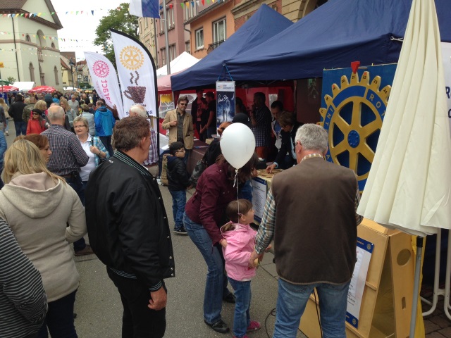 Erneute Mitwirkung beim Hockenheimer Mai 2017Mit viel Engagement gelang es mit ihrem Glücksrad wieder einen stattlichen Betrag für die rotarischen Förderprojekte zu Gunsten der Kinder in der Hockenheimer Region zu erzielen. Der Rotary Stand hat inzwischen Tradition und viele Freunde, die jedes Jahr aufs Neue das Glücksrad für eine gute Sache drehen. Die hohen Gewinnchancen verdanken wir den zahlreichen Sponsoren und Gönnern, dafür sagen wir herzlichen Dank! Beworben wurde auch das neue Projekt "Rotary Coffee" sowie unser Benefizkonzert am 13.10.2017 in der evangelischen Kirche Neulußheim mit Roland Bless. Roland Bless, bis 2010 Schlagzeuger, Gitarrist, zweiter Sänger und Manager der Popgruppe PUR, spielt nicht nur am Freitag, 13. Oktober, um 20 Uhr hier, er war auch am Rotary-Stand auf dem Hockenheimer Mai, plauderte mit Fans und gab Autogramme. Erneut waren auch die Rotaracter mit von der Partie und haben damit den Auftritt bereichert und zusätzliches Publikum angezogen. Die nachfolgene Bildergalerie zeigt Impressionen am Rotary Stand. Zum automatischen Ablauf der Bildfolge muss der Cursor ausserhalb des Bildes positioniert sein. Anhalten erfolgt durch Cursorposition innerhalb des Bildes.