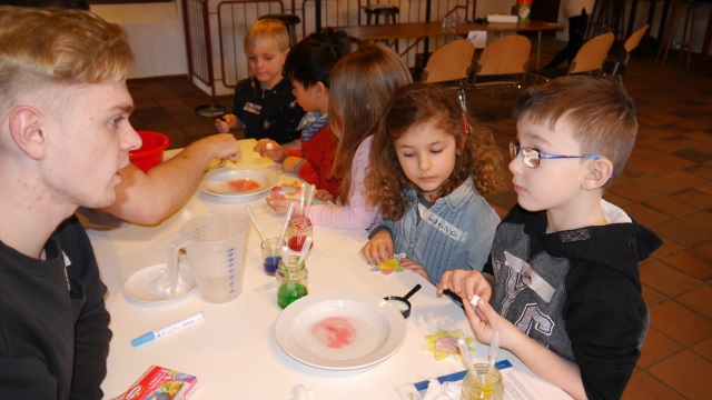 Rotary Club: Zwei „Tage der kleinen Forscher“ im Pumpwerk bieten 180 Vorschulkindern aus allen acht Kindergärten Experimente aus den Bereichen Luft und WasserWie man mit Zuckerwürfeln bunte Bilder malt |
