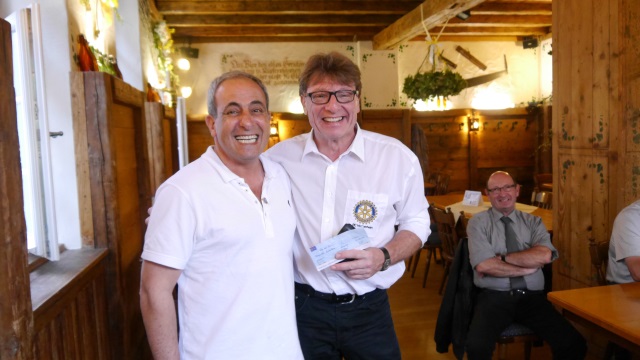 Die traditionelle internationale Begegnung zwischen den Rotary Clubs aus Commercy und Hockenheim, die von Gustav Schrank, dem Altbürgermeister der Rennstadt, vor zehn Jahren begründet wurde, wurde dieses Jahr vom RC Hockenheim ausgerichtet. Der Besuch hatte zum Ziel, alte Freundschaften zu stärken und lokale Besonderheiten zu entdecken. Eine Schiffsrundfahrt auf dem Reffenthaler Altrhein, eine Spargeltour vom Anbau über das Stechen bis zum Verzehr des feinen Gemüses sowie eine Zeitreise im Turmuhrenmuseum in Neulußheim zählten zu den Höhepunkten des Programms. Auch die rotarische Jugend, die Rotaracter, nutzten die Gelegenheit, neue Kontakte nach Commercy zu knüpfen. Präsident Prof. Dr. Walter Götzmann begrüßte die Gäste aus Commercy bei einem Glas Sekt und frischen Erdbeeren aus Hockenheim, im Gegenzug wurden die berühmten „Madeleines de Commercy“ überreicht. Eine Bootsrundfahrt ab Speyer durch den Reffenthaler Altrhein mit der MS Sea Life zeigte die idyllische Rheinlandschaft. Der Wettergott war an diesem Wochenende der Region einigermaßen wohlgesonnen so dass die Gäste das Programm ohne Regenschirm genießen konnten. Nach einem Spaziergang zum Speyerer Dom konnte man den Tag bei einen gemütlichen Umtrunk im Domhof abschließen. Wichtigstes Ziel der Rotarier ist es, Hilfsprojekte im In- und Ausland zu fördern. Zu diesem Zweck übergab Präsident Samir Abouzeid aus Commercy dem hiesigen Club einen Scheck über 500€ als Gastgeschenk. Der folgende Tag stand ganz im Fokus des Spargels. Spargelbauer Peter Geng aus Reilingen führte die Gruppe in französischer und deutscher Sprache über den Spargellehrpfad, bis die Teilnehmer sich schließlich selbst auf seinem Spargelfeld in der Kunst des Spargelstechens üben konnten. Im HSV Restaurant am Ring wurde die Spargeltour von köstlichen Spargelgerichten gekrönt, die die Besucher aus Frankreich in dieser Form zubereitet, noch nicht kannten. Der letzte Programmpunkt war der Besuch des Turmuhrenmuseums in der Alten Schule in Neulußheim. Die überregionale Ausstellung im Dachgeschoß der alten Schule ermöglichte einen Gang durch 500 Jahre Geschichte der Zeitmessung. Neben Uhren aus aller Welt, konnten Turmuhren aus mehreren Jahrhunderten bewundert werden. Mit Stolz präsentierte Museumsleiter Norbert Schäfer den Rotariern aus Commercy und Hockenheim sein jüngst restauriertes Holzturmuhrwerk, das es in dieser Form nur noch zweimal auf der Welt gibt. Mit einem Glockenspiel an der Alten Schule verabschiedete sich die rotarische Familie von ihren Gästen, in der Vorfreude auf ein baldiges Wiedersehen in Commercy.“ Ein wunderbares Event deutsch-französischer Freundschaft“ resümierte Rotarier Dieter List, Organisator dieser Veranstaltung. DL © Hockenheimer Tageszeitung, Mittwoch, 22.06.2016 Fotos: RCH Die nachfolgene Bildergalerie zeigt Impressionen des Commercy-Besuchs. Zum automatischen Ablauf der Bildfolge muss der Cursor ausserhalb des Bildes positioniert sein. Anhalten erfolgt durch Cursorposition innerhalb des Bildes.