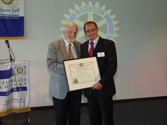 Höhepunkt der Charterfeier war die Übergabe der Charterurkunde durch den Governor des Rotary-Distrikts 1860, Dr. Horst Schöttler aus Kaiserslautern. Mit dieser wird die Aufnahme in die rotarische Weltgemeinschaft dokumentiert. Der Governor verband diesen Anlass mit einer eindrucksvollen Ansprache, bei der er einen Bogen von der Gründung am 23. Februar 1905 in Chicago und der rotarischen Zielsetzung bis in die heutige Zeit spannte. Damals wie heute gelte der Anspruch auf Freiheit, Freizügigkeit, Toleranz und Öffnung und es sei schon bemerkenswert, dass Rotary nach wie vor in totalitären Staatssystemen nicht zugelassen werde.