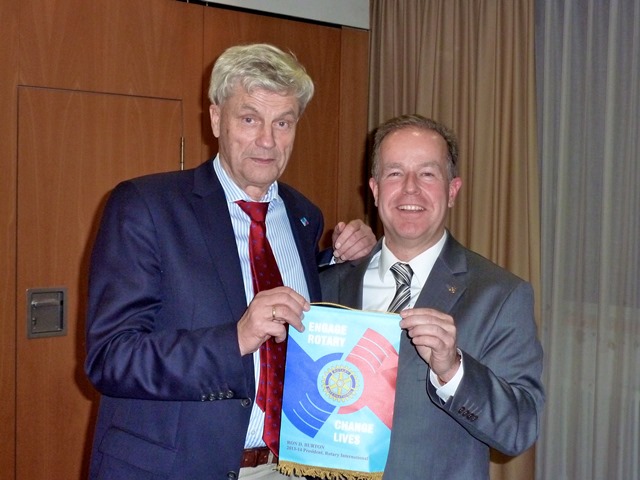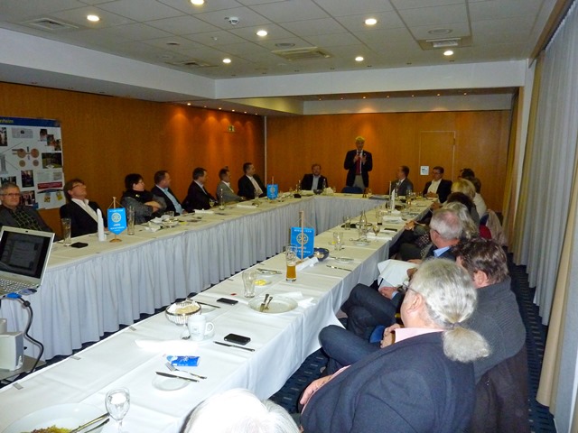 Chronik Governorbesuch beim RCH 2013Am 18.11.2013 hatten wir Governor Klaus Willimczik zu Gast, ein Highlight des rotarischen Jahres. Der Governor informierte über die rotarischen Ziele und die Programme des laufenden rotarischen Jahres. Er stellte zunächst seine Vita vor und berichtete über seinen Weg zu Rotary. Schwerpunkt seiner Arbeit ist die Förderung des Servicegedankens. Serviceprojekte und Freundschaft sind die Grundlagen eines gesunden Clublebens. Aus seiner Erfahrung in der Sportpsychologie vermittelte er, dass Leistungsmotivation aus den Parametern „Motiv“ und „Anreiz“ resultieren, aus denen dann Handlung erwachsen kann. In der rotarischen Gemeinschaft ist das Motiv zu dienen ein Schlüsselimpuls. Als Beispiele wurden das Programm „End Polio now“ sowie Programme zur Gesundheitsförderung von Kindern genannt. Für die Gesundheit von Kindern ist vor allem eine gesunde, vollwertige Ernährung und ein Mehr an Bewegung von Bedeutung. Der Governor warb ebenfalls für die Beantragung von Grants zur Steigerung der Effizienz und des Volumens von Clubprojekten. Abschliessend rief Governor Willimczik auf, Rotary zu leben und bat darum, ihn in seinen Bemühungen zu unterstützen. Der Governor zeigte sich sehr zufrieden mit unserem Clubleben und fühlte sich in unserem Club sichtlich wohl. Er bedankte sich bei unserem Präsidenten Christoph Vigano und wünschte weiterhin viel Erfolg und Freude. Die nachfolgene Bildergalerie zeigt einige Impressionen des Governor-Besuchs. Zum automatischen Ablauf der Bildfolge muss der Cursor ausserhalb des Bildes positioniert sein. Anhalten erfolgt durch Cursorposition innerhalb des Bildes.