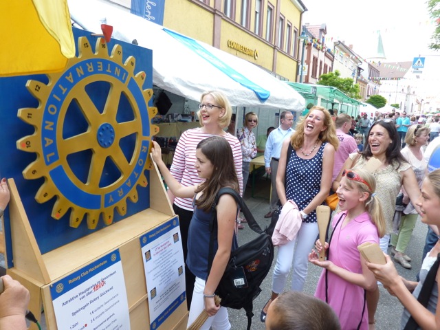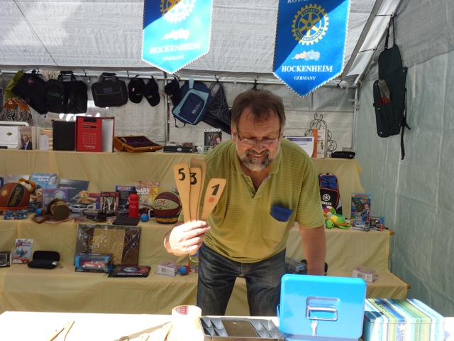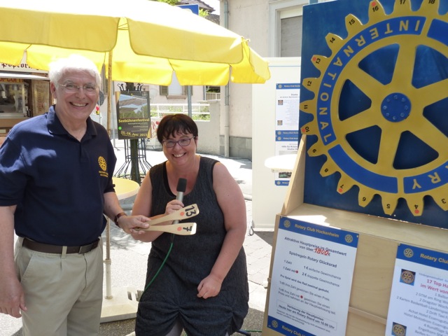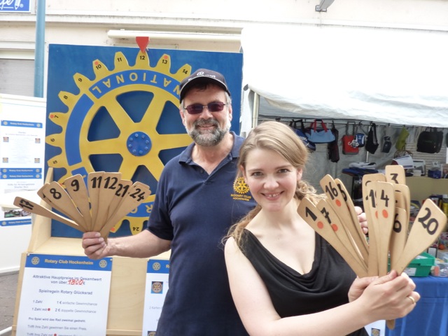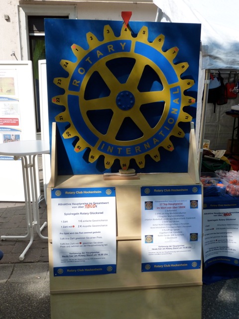 Chronik Hockenheimer Mai 2013Mit dem Glücksrad engagierte sich der Rotary Club Hockenheim erneut beim Hockenheimer Mai. Der Reinerlös kam ausschließlich dem Bildungsprojekt "Lesen lernen - Leben lernen" an den Grundschulen und der Förderschule des Verwaltungsraums Hockenheim zugute. Dank zahlreicher Spender gab es viele attraktive Preise sowie nützliche Sachpreise zu gewinnen. Glücksrad dreht sich für SchulenErfolgreiche rotarische Bilanz zum Hockenheimer MaiHier der Bericht unseres Projektleiters Dieter List: Liebe rotarische Freundinnen und Freunde, Die nachfolgene Bildergalerie zeigt einen Querschnitt unserer Präsenz beim Hockenheimer Mai. Zum automatischen Ablauf der Bildfolge muss der Cursor ausserhalb des Bildes positioniert sein. Anhalten erfolgt durch Cursorposition innerhalb des Bildes.
