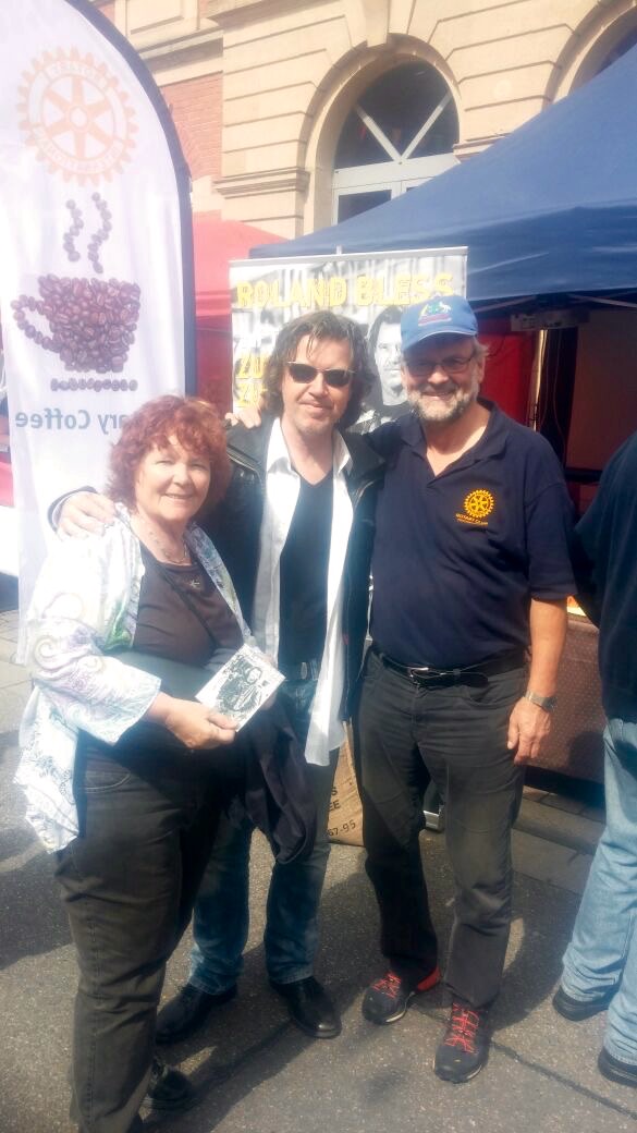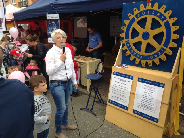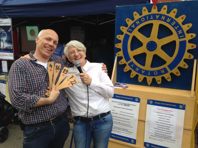 Erneute Mitwirkung beim Hockenheimer Mai 2017Mit viel Engagement gelang es mit ihrem Glücksrad wieder einen stattlichen Betrag für die rotarischen Förderprojekte zu Gunsten der Kinder in der Hockenheimer Region zu erzielen. Der Rotary Stand hat inzwischen Tradition und viele Freunde, die jedes Jahr aufs Neue das Glücksrad für eine gute Sache drehen. Die hohen Gewinnchancen verdanken wir den zahlreichen Sponsoren und Gönnern, dafür sagen wir herzlichen Dank! Beworben wurde auch das neue Projekt "Rotary Coffee" sowie unser Benefizkonzert am 13.10.2017 in der evangelischen Kirche Neulußheim mit Roland Bless. Roland Bless, bis 2010 Schlagzeuger, Gitarrist, zweiter Sänger und Manager der Popgruppe PUR, spielt nicht nur am Freitag, 13. Oktober, um 20 Uhr hier, er war auch am Rotary-Stand auf dem Hockenheimer Mai, plauderte mit Fans und gab Autogramme. Erneut waren auch die Rotaracter mit von der Partie und haben damit den Auftritt bereichert und zusätzliches Publikum angezogen. Die nachfolgene Bildergalerie zeigt Impressionen am Rotary Stand. Zum automatischen Ablauf der Bildfolge muss der Cursor ausserhalb des Bildes positioniert sein. Anhalten erfolgt durch Cursorposition innerhalb des Bildes.