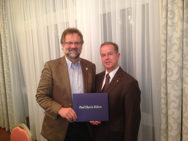 Mit besonderer Freude zeichnete Präsident Christoph Vigano beim Club-Meeting am 14.10.2013 Dieter List mit dem „Paul-Harris-Fellow” aus,