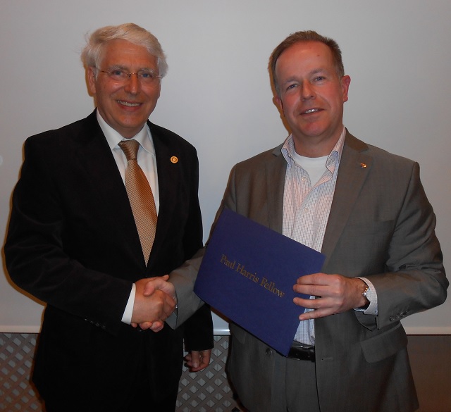 Mit besonderer Freude zeichnete Präsident Christoph Vigano beim Club-Meeting am 10.03.2014 Freund Walter Weidner für seine besonderen Leistungen mit der „Paul-Harris-Fellow” Medaille aus.