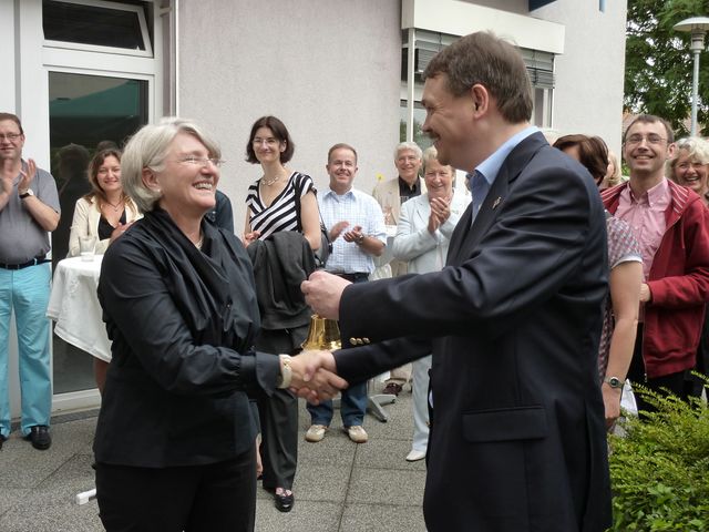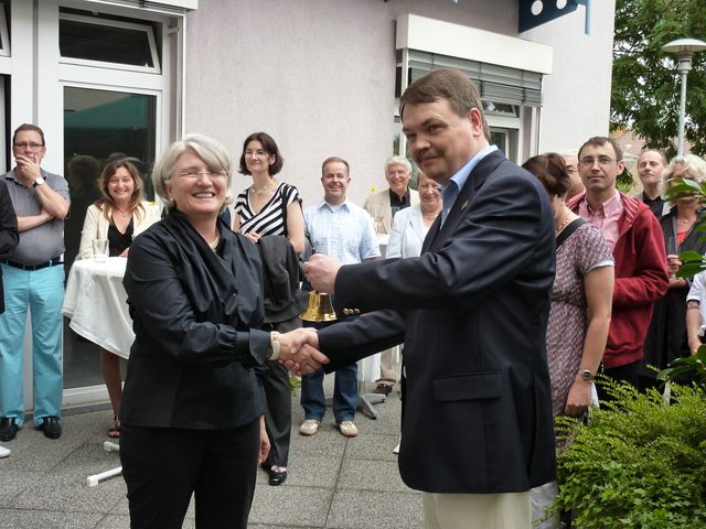 Bevor Dr. Hildegard Rimmler das präsidiale Utensil "Sitzungsglocke" an ihren Nachfolger überreichte, ließ sie die