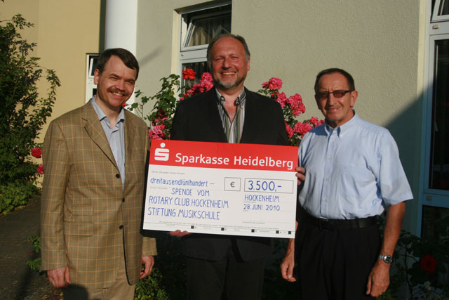 Von der Idee überzeugt, beschloss der Rotary Club Hockenheim, der in Gründung befindlichen Förderstiftung Musikschule Hockenheim