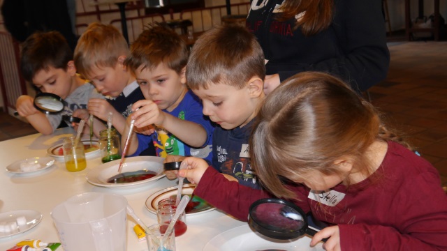 Rotary Club: Zwei „Tage der kleinen Forscher“ im Pumpwerk bieten 180 Vorschulkindern aus allen acht Kindergärten Experimente aus den Bereichen Luft und WasserWie man mit Zuckerwürfeln bunte Bilder malt |